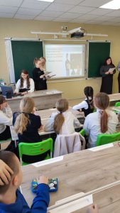 Школьников виртуально ознакомили с актуальным состоянием развития среднего профессионального образования, с перспективами обучения в колледже по образовательным программам ФП «Профессионалитет». Ученики с интересом слушали студентов, задавали вопросы. Интересным моментом в завершение мастер-класса было онлайн-тестирование по профориентации, с помощью QR-кода на слайде презентации, по результатам которого было определено в каком направлении выбирать будущую специальность.